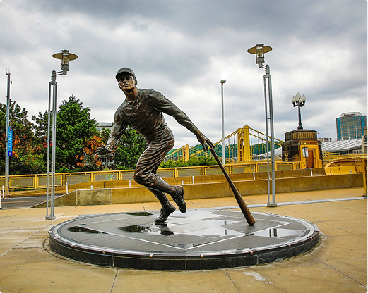 It stands at the north end of the Roberto Clemente Bridge, symbolizing his deep connection to the city of Pittsburgh.